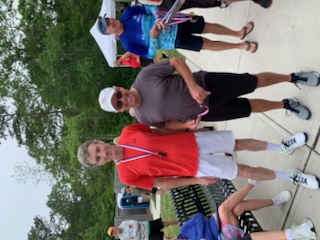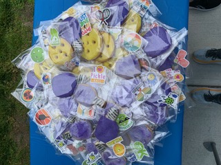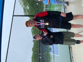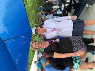 A special thanks to the tournament committee: Tom Donahue for all the computer work on the division bracket setups and Bob Powers for coordinating the sign ups and payment process, Kerry McNamara for obtaining the medals, Paul Cove for the protective eye glasses, and Arunas Kuncaitis working with the Vender Dinkyballs. A HUGE thank you to Tom Traversi for being the mastermind behind it all! Without Tom’s experience in this area, we would not have been able to put together such an amazing tournament. Thanks to MaryAnn Gillooly who organized all the food for the tournament and Patty Traversi, Karen Donahue and Ronny Cove who spent several days making the pickleball cookies that you see above. Thanks so much also to Judy Eide for all her work raising funds (The Longest Day) for the local Alzheimer organization here on the Cape. We’ll have exact figures in about a week, but it appears between Judy’s efforts and profits from our tournament, over $4,500 has been raised. Finally, all the 20 plus volunteers: the “runners", the “yellers" and helpers for their work on both Saturday and Sunday. Many thanks to you all.